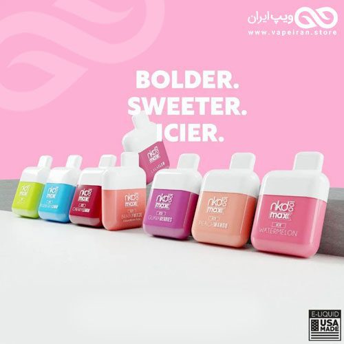 نسل جدید پادسیستم های یکبارمصرف کمپانی آمریکایی نیکد 100 به اسم “نیکد مکس” به بازار عرضه شده است. این سیگارالکترونیکی یکبار مصرف جدید با میزان نیکوتین 50 میلی گرم در سال 2022 تولید و ارائه شده که از قبل با ایجوس های بسیار با کیفیت که ساخت خود کمپانی NKD100 در ایالات متحده هستند، پر شده است. این پادسیستم با کیفیت ساخت بالا و ظرفیت کامدهی 4500 کام، یکی از بهترین و با کیفیت ترین سیگارالکترونیکی های یک بارمصرف در دنیاست. این پادسیستم کوچک و سبک، بدون نیاز به شارژ مجدد جویس و بدون نیاز به نگه داشتن دکمه در هنگام کام دهی در طعم های مختلف عرضه شده است. دستگاه ویپ پادسیستم یک بار مصرف نیکد مکس، مجهز به درگاه فست شارژ USB Type-C می باشد تا کاربر بتواند در سریع ترین زمان ممکن دستگاه خود را شارژ کند. شما می توانید، این دستگاه را با ضمانت اصالت کالا از سلامت فیزیکی از فروشگاه ویپ ایران تهیه کنید.