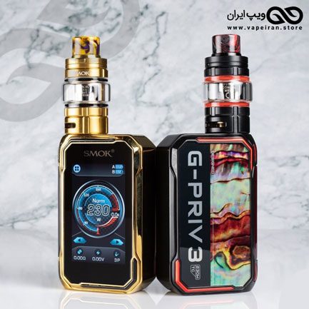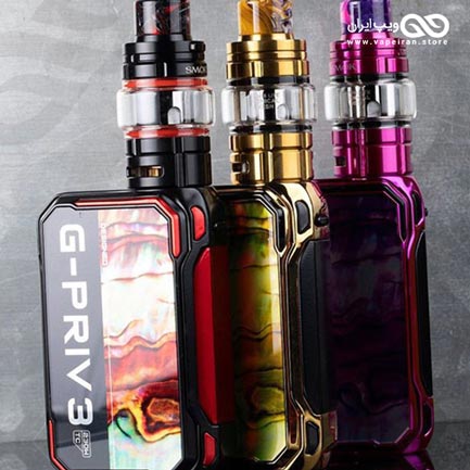 دستگاه ویپ حرفه ای SMOK G-PRIV 3 جدیدترین مدل از خانواده معروف جی پرایو هست که تو سال 2020 معرفی شد.دستگاهی لوکس، با نهایت قدرت 230 وات، و استفاده همزمان از دو باتری با نهایت ظرافت و دقت نسبت به مدلهای قبلی اش به روز رسانی شده.چیپست جدید این دستگاه به شما امکانات زیادی رو ارائه میده که از اون میشه به 230 وات قدرت و محافظت های امنیتی متعدد اشاره کرد.صفحه نمایش لمسی 2.4 اینچی رنگی با سایز عالی با کوچیکترین لمس شما پاسخگوست و همه اطلاعات رو خواهید دید.این دستگاه با تانک اتومایزر جدید TFV16 ارائه شده که دو مدل کویل مش رو معرفی کرده است.شما طعم و بخار بسیار عالی رو میتونید با این مدل تانک و کویل مش تجربه کنید و از ویپینگ خودتون با پرچم دار برند اسموک لذت ببرید.ما تو ویپ ایران شدیدا به این دستگاه علاقه مند شدیم و برای ویپرهایی که یکی از بهترین دستگاه های دنیا و طرفدار قوی ترین مدلها هستند مناسب است.