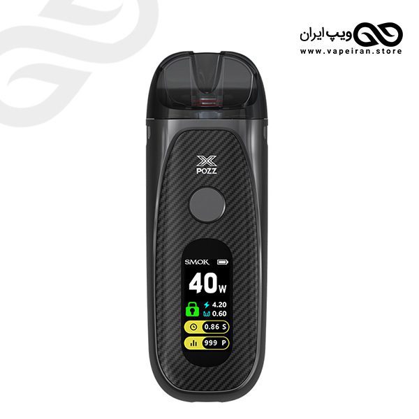 ویپ پاد پوز ایکس دستگاه جدید کمپانی اسموک با ۴۰ وات قدرت و ۱۴۰۰ میلی آمپر باتری داخلی میتواند تجربه خوبی از ویپینگ را برای شما به ارمغان بیاورد. صفحه نمایش TFT اسموک Pozz X تمام اطلاعاتی که از یک ماد میخواهید به شما نشان میدهد.این صفحه نمایش کوچک توان دستگاه را در بالای خود, ولتاژ دکمه کام دهی و مقاومت کویل را در میانه صفحه و شمارنده تعداد پاف های گرفته شده و مدت زمان آخرین پاف را به شما نشان میدهد. همچنین در گوشه سمت راست بالای این صفحه نشانگر باتری قرار دارد و شما میتوانید از وضعیت باتری دستگاه باخبر باشید.